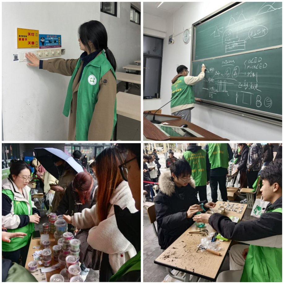 突出内涵特色,筑牢劳动教育“主阵地”。公司结合自身实际与校园文化建设需求,积极开展校园劳动实践活动,大力培育员工劳动文化。公司“砹水硒电”志愿服务队活跃在校园的各个角落,认真擦净黑板、关紧门窗、关闭电灯、检查水龙头,进行层层排查,及时上报问题并联系维修。通过这些行动,推动节水节电检查活动向可持续化、常态化迈进,引导师生从身边小事做起,为“双碳”目标贡献力量。雷锋月与植树节相遇,绿色行动如火如荼。植树节当天,公司在一食堂小广场举办节水节电和双碳知识科普宣传活动,提供绿植和特色花盆,邀请同学们参与种植体验。在志愿者的指导下,同学们亲手栽种并领养专属绿植,掌握养护知识,提升环保素养,为校园增添绿色生机,共建减碳校社。此次活动不仅丰富了校园文化生活,更通过劳动实践培育了员工的劳动文化,让绿色发展理念落地生根。