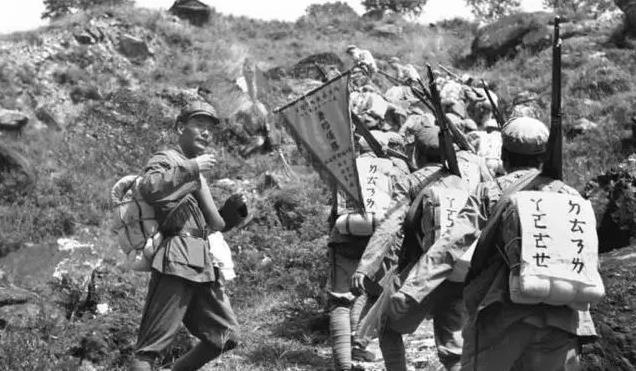 祁建华(左)帮助行军的战士学习注音字母