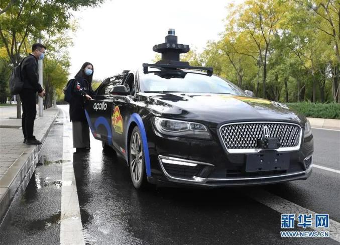市民在北京市海淀区稻香湖路的百度自动驾驶出租车指定上车点乘车(10月14日摄)。任超 摄