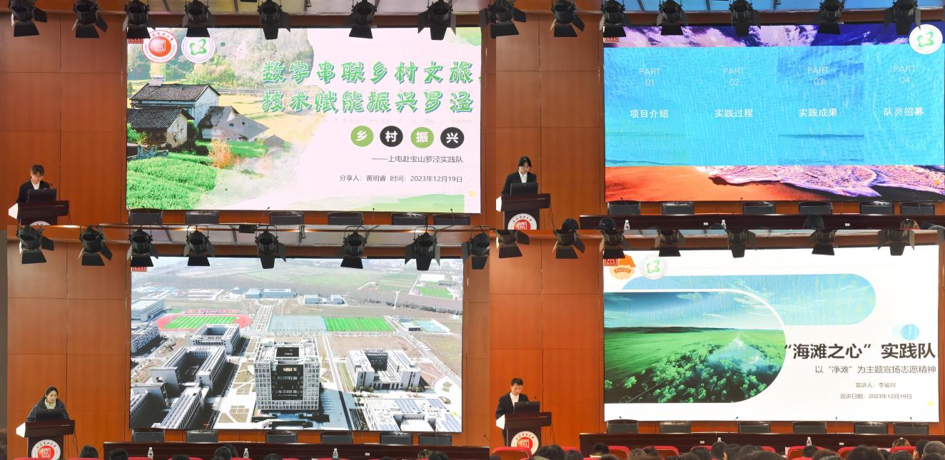 市级和校级两支优秀社会实践项目进行经验分享。“‘渔’你相随,‘崇’电出发”实践小组利用“望闻问切”四步走,沉淀四年只为“碳”寻光的希望;“数字串联乡村文旅,技术赋能振兴罗泾”实践队坚持以数绘农,以数治农,以数兴农,为打造美丽罗泾出一份力。通过他们的分享,同学们了解到实践最重要的是大胆的走出去,明确的目标和详密的计划可以让实践过程事半功倍。