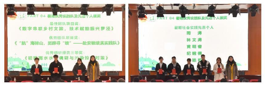 会上,张亦男为获得校级暑期优秀实践队和暑期先进个人进行颁奖。“数字串联乡村文旅,技术赋能振兴罗泾”实践队荣获最佳团队项目奖,“航海梯山,觅踪寻‘绩’”实践队获得优秀团队项目奖,“初期雨水水质调研与污染控制对策”实践队获得优秀调研报告三等奖,黄明睿、纪鳕桐、林文涛、周涛、申皓哲获得校级暑期先进个人。