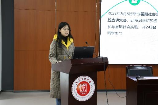 赵霜围绕知行杯比赛为同学们进行了题目为“知行杯参赛准备的靶向问题”的专题讲座。赵霜详细讲解了社会实践赛事的相关内容,她重点强调了社会实践选题的重要性,通过对比不同年份的比赛通知,发掘时事重点和热点,指导同学们贴近热点问题进行选题,为同学们有针对性的组建实践队伍和备赛提供帮助。