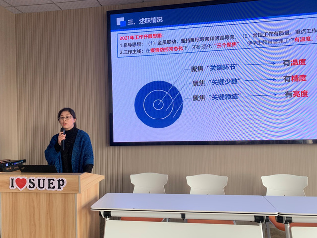 2021年12月31日,公司在临港校区召开2021年度中层干部考核民主测评会。校组织部副部长李艳应邀出席,公司班子和全体教师参会,会议由分工会主席安莹主持。