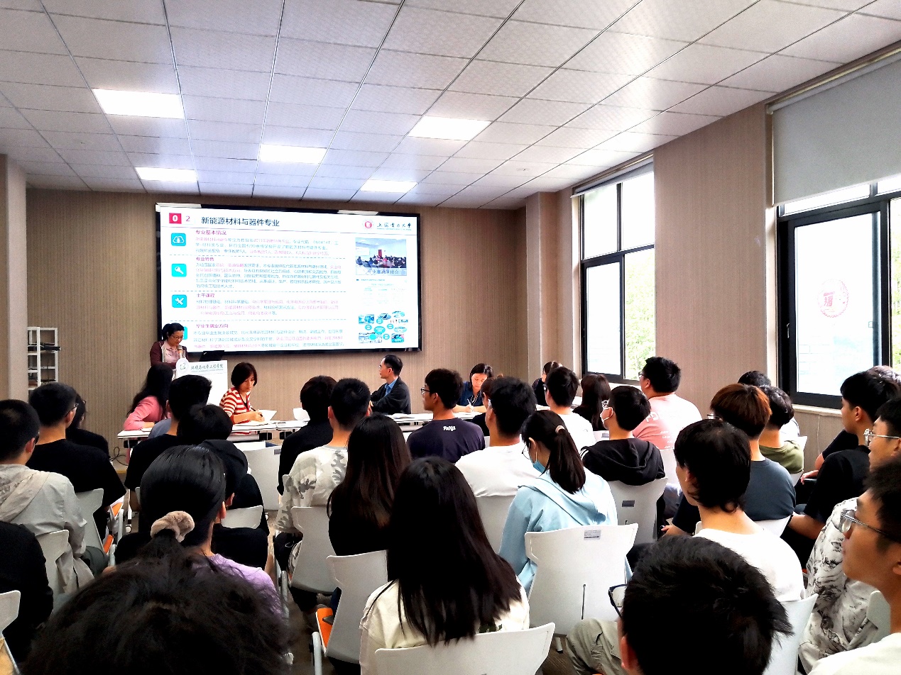 首先,系主任赖春艳对新能源材料与器件专业进行了介绍。她回顾了新能源材料与器件专业的创立历程、团队力量以及近年来本专业在教学和科研方面所取得的成果,展望了专业未来的发展趋势,并详细介绍了专业的发展、课程体系(基础课和核心课、选修课、实践课)以及就业前景等方面的内容。同学们纷纷表示,通过这次介绍,他们对新能源材料与器件专业的学习内容有了更加全面清晰的认识,明确了未来四年的学习目标。