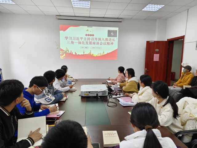 支部党员胡雅雯带领全体党员认真学习了习近平总书记在上海主持召开深入推进长三角一体化发展座谈会上发表的重要讲话精神。习近平总书记强调,深入推进长三角一体化发展,进一步提升创新能力、产业竞争力、发展能级,率先形成更高层次改革开放新格局,对于我国构建新发展格局、推动高质量发展,以中国式现代化全面推进强国建设、民族复兴伟业,意义重大。