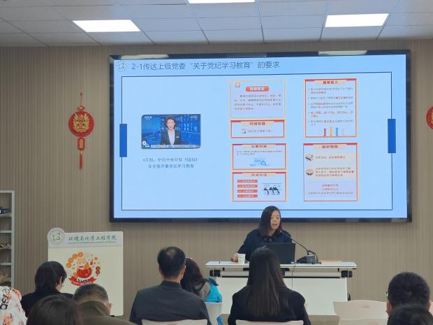 会议后半程,陶莹对公司党纪学习教育进行了动员部署,她带领学习了中央有关党纪学习教育的要求,并对公司党委“党的建设和全面从严治党工作领导小组扩大会议”精神进行了全面传达。陶莹强调,本次深入开展党纪学习教育,旨在让全体党员师生清楚党的纪律规矩是什么,要弄明白能干什么、不能干什么,她要求全院师生党员将自主学习和集中学习相结合,在强化纪律意识中不断提高党性修养,强化政治担当。