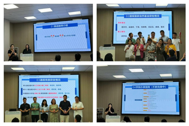 会议首先开启的是迎接与表彰环节。新入职教师黄淑君表达了加入环化大家庭的喜悦与期待。随后本年度成功获批国家自然科学基金项目,近期指导员工在国家级学科竞赛、科创活动中获得突破性成绩的十余位教师陆续上台,接受公司的表彰与慰问。这一连串的亮眼成绩既彰显了公司的科研实力和教学实力,更展现了环化师生团结协作、勇于创新的精神风貌,为新学期公司全面发展的再启程注入了满满动力。