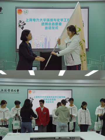随后,涂莹亮为志愿者代表郑重授旗。接过旗帜的“小叶子”们,也接下了这份沉甸甸的责任。他们表示,将肩负起这份责任,继续发扬和传承上电青年的青春风采,为进博会贡献自己的力量。