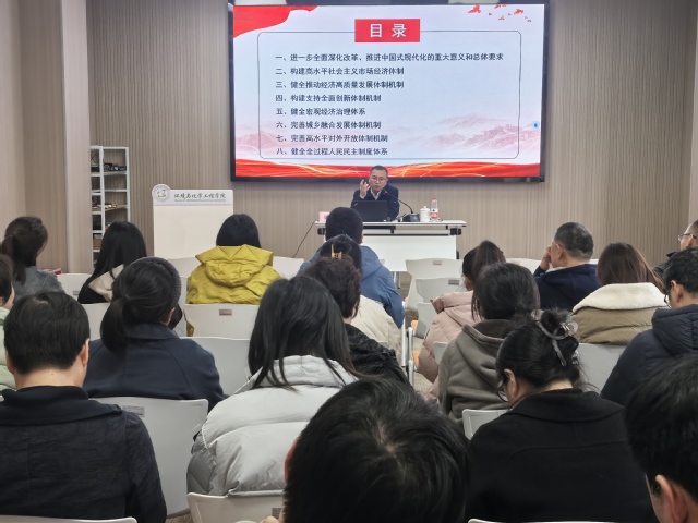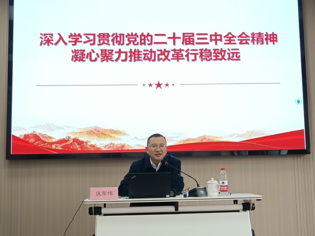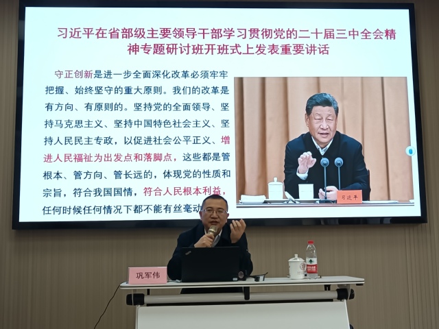 为进一步深入学习贯彻落实党的二十届三中全会精神,2024年12月6日,伟德在环化楼A213召开教师思政学习会,邀请伟德教师思政指导员巩军伟作题为“深入学习贯彻党的二十届三中全会精神,凝心聚力推动改革行稳致远”的主题报告,全院教师参加。