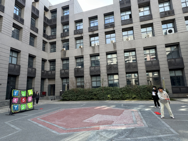 本次活动分为投壶、飞盘、滚动水瓶三个项目。在投壶区,各个参赛同学摩拳擦掌、跃跃欲试。志愿者同学宣布比赛规则和流程后,只听一声令下,参赛者屏气凝神,全身贯注瞄准投掷,大家都在全力以赴,表现出不凡的实力。参加滚动水瓶的同学锚准位置,轻轻用力滚动瓶子,一举得分。参加飞盘比赛的老师和同学们先在运动场地进行热身,在正式进入比赛后,他们随即向空中抛起飞盘,飞盘在空中飞舞,这一个扔得远一些,那一个扔得近一些,整个比赛热闹而激烈,参赛导师和同学们个个情绪高涨,全心投入。